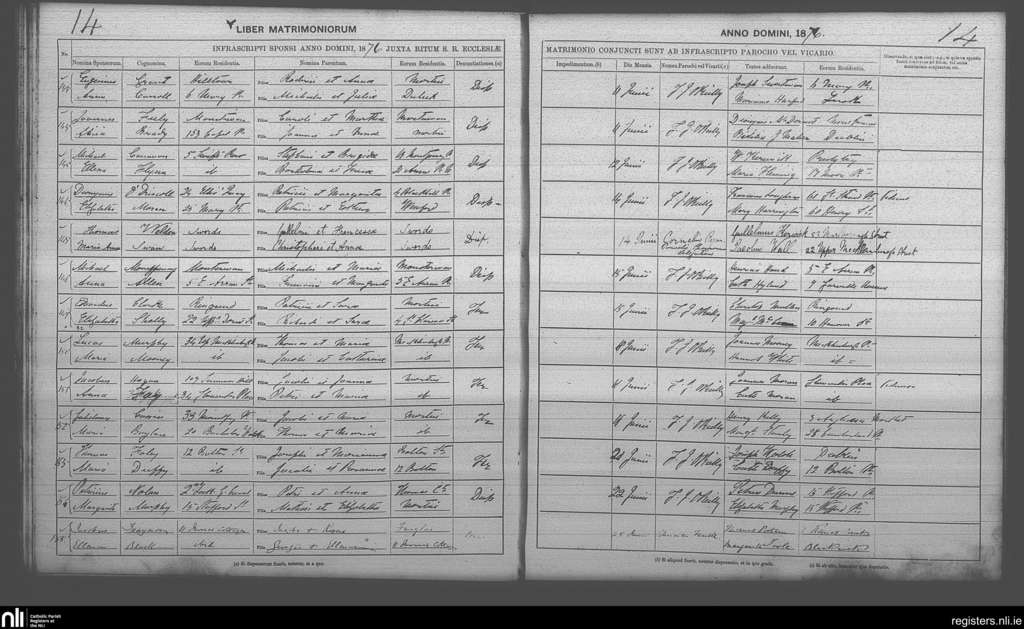 St. Mary's, Dublin city; County of Dublin; Archdiocese of Dublin. Marriages, June 1876