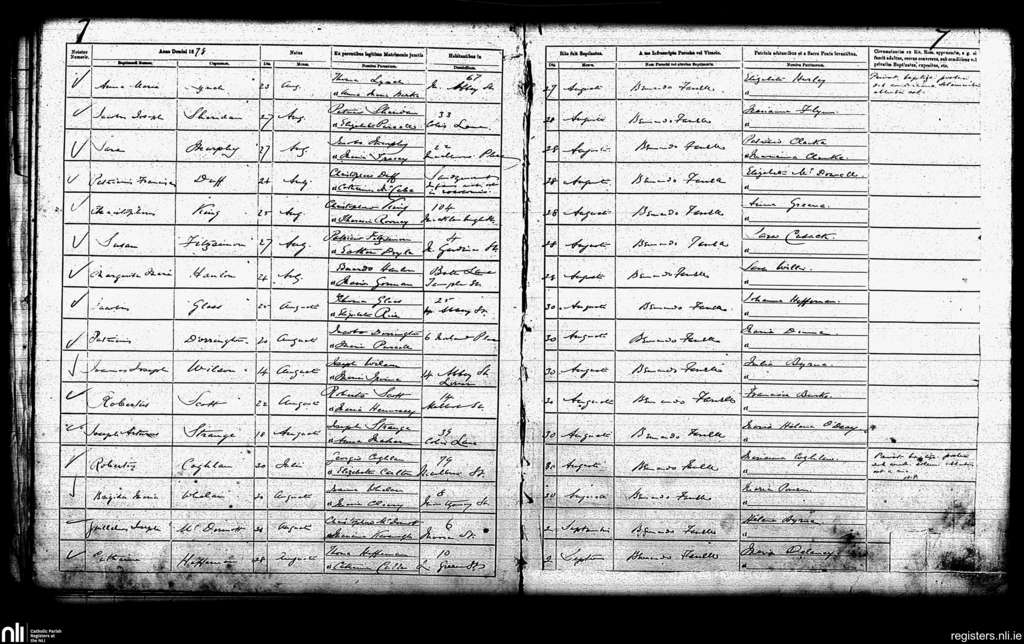 St. Mary's, Dublin city; County of Dublin; Archdiocese of Dublin. Baptisms, Aug. 1878 to Sep. 1878