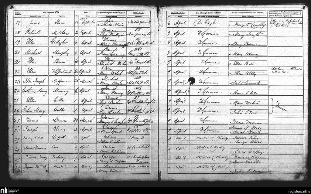 St. Mary's, Dublin city; County of Dublin; Archdiocese of Dublin. Baptisms, Apr. 1883