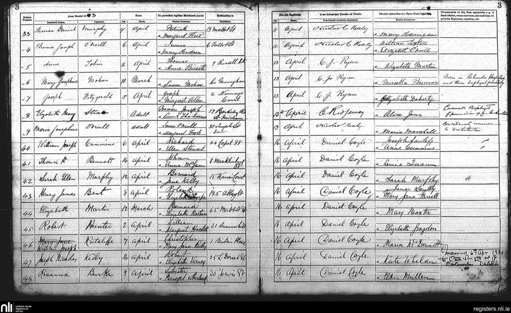 St. Mary's, Dublin city; County of Dublin; Archdiocese of Dublin. Baptisms, Apr. 1883