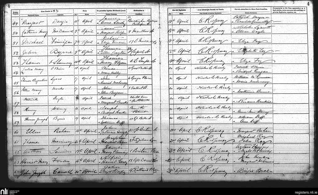 St. Mary's, Dublin city; County of Dublin; Archdiocese of Dublin. Baptisms, Apr. 1883
