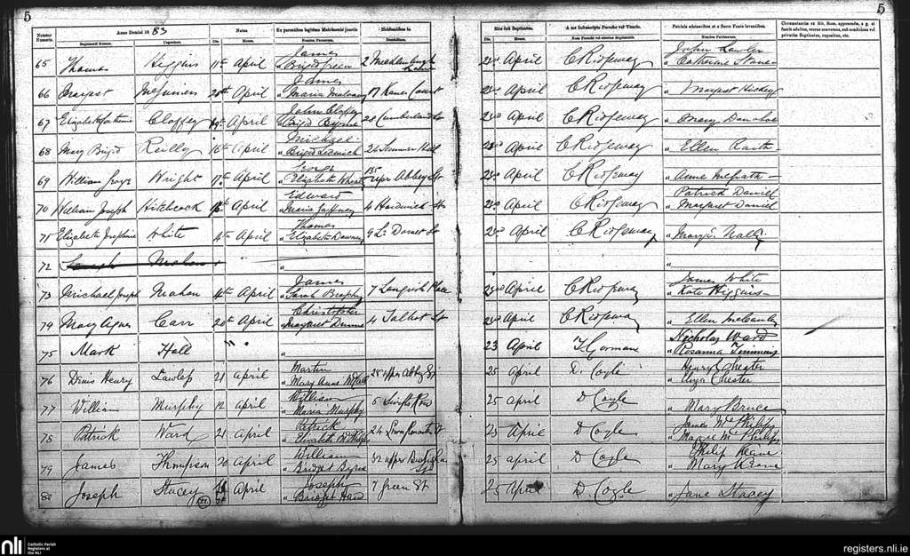 St. Mary's, Dublin city; County of Dublin; Archdiocese of Dublin. Baptisms, Apr. 1883