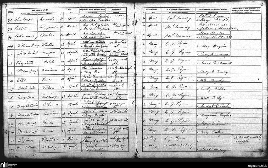 St. Mary's, Dublin city; County of Dublin; Archdiocese of Dublin. Baptisms, Apr. 1883 to May 1883