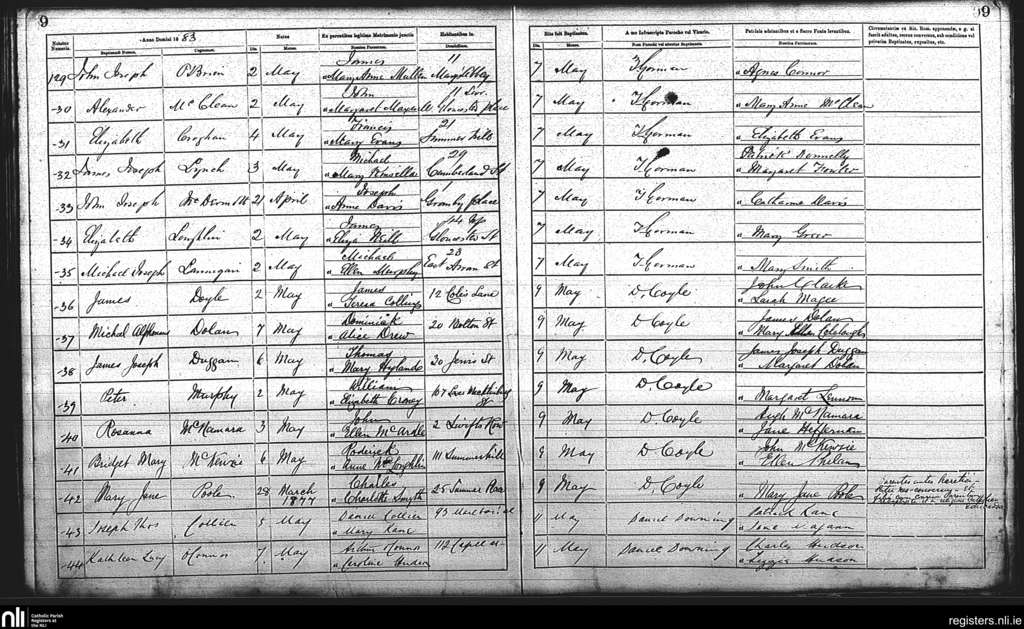 St. Mary's, Dublin city; County of Dublin; Archdiocese of Dublin. Baptisms, May 1883