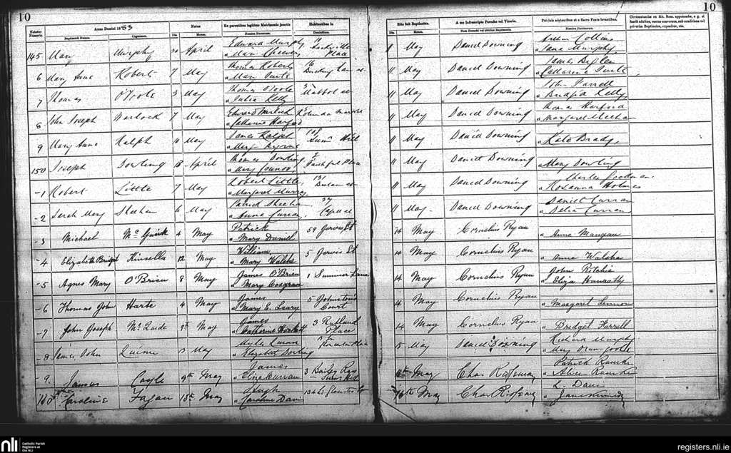 St. Mary's, Dublin city; County of Dublin; Archdiocese of Dublin. Baptisms, May 1883