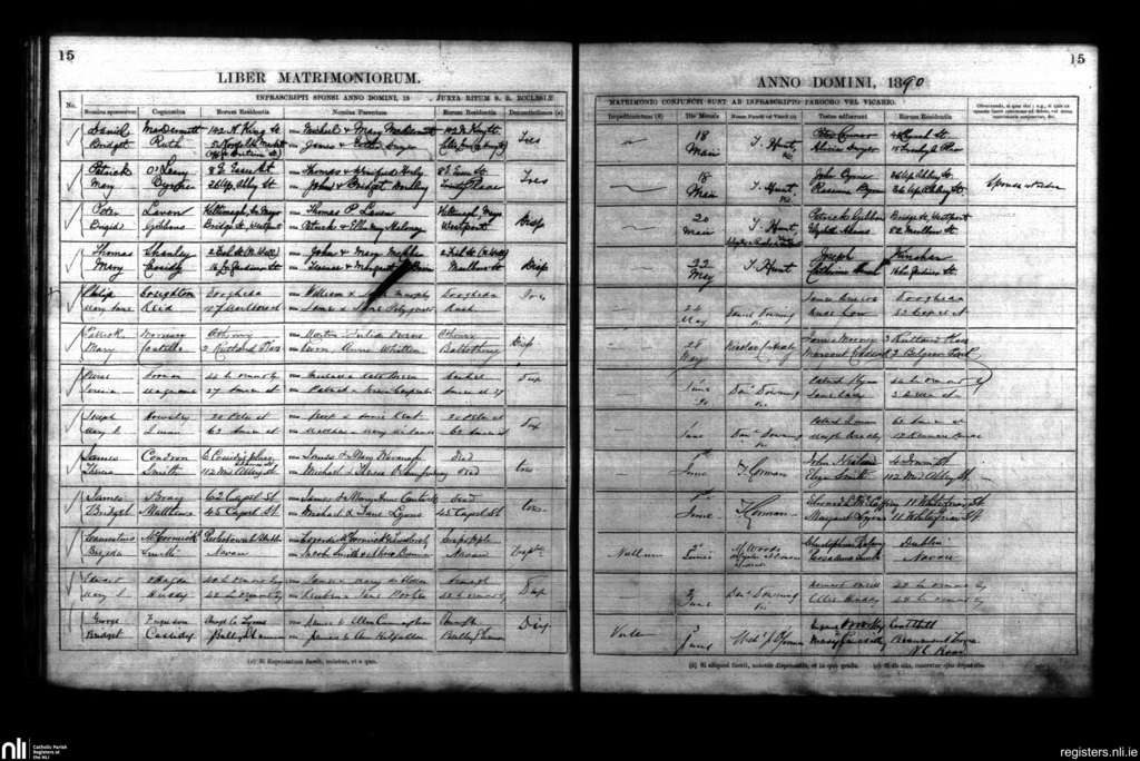 St. Mary's, Dublin city; County of Dublin; Archdiocese of Dublin. Marriages, May 1890 to June 1890