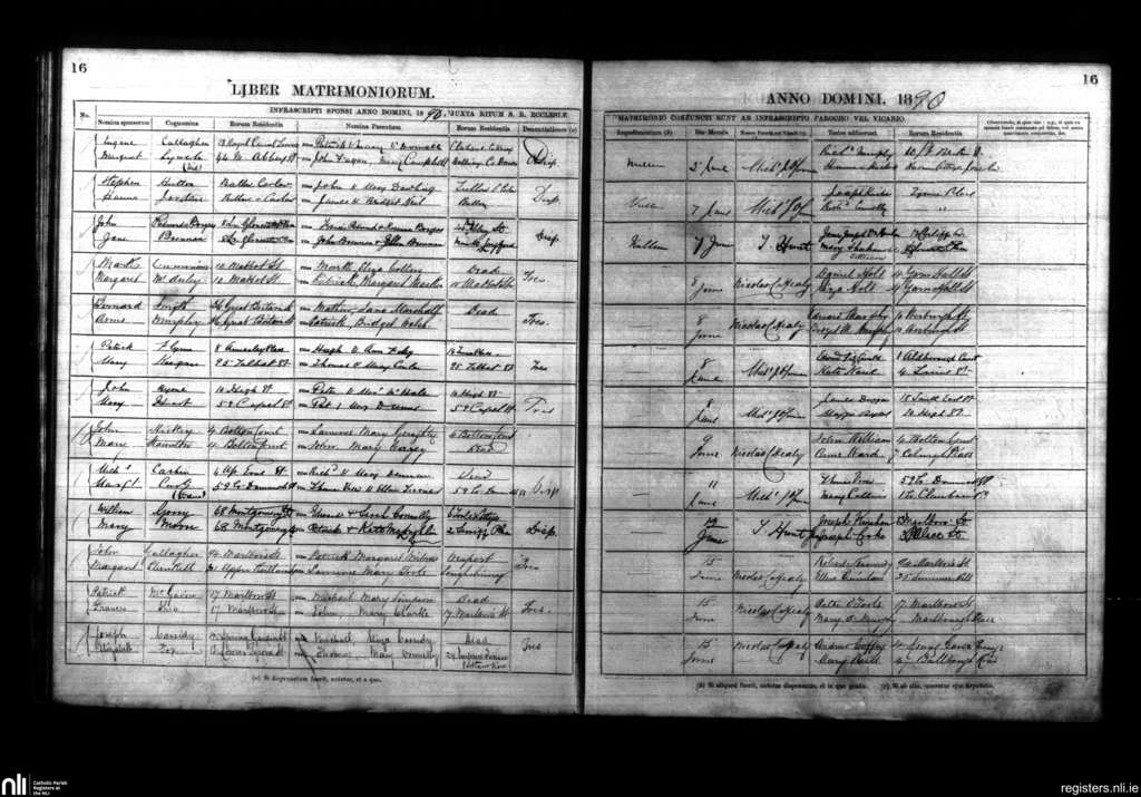 St. Mary's, Dublin city; County of Dublin; Archdiocese of Dublin. Marriages, June 1890