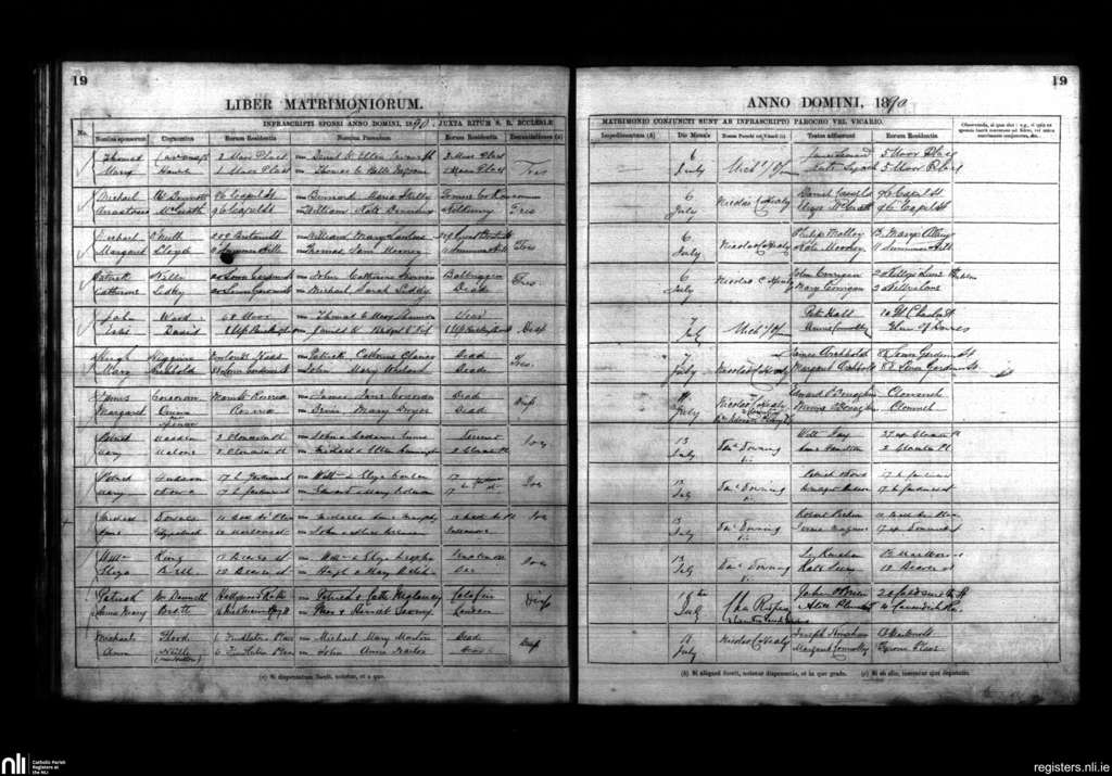 St. Mary's, Dublin city; County of Dublin; Archdiocese of Dublin. Marriages, July 1890