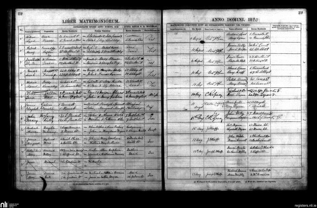 St. Mary's, Dublin city; County of Dublin; Archdiocese of Dublin. Marriages, Aug. 1890