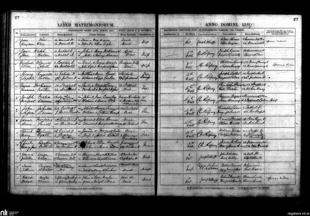 St. Mary's, Dublin city; County of Dublin; Archdiocese of Dublin. Marriages, Oct. 1890