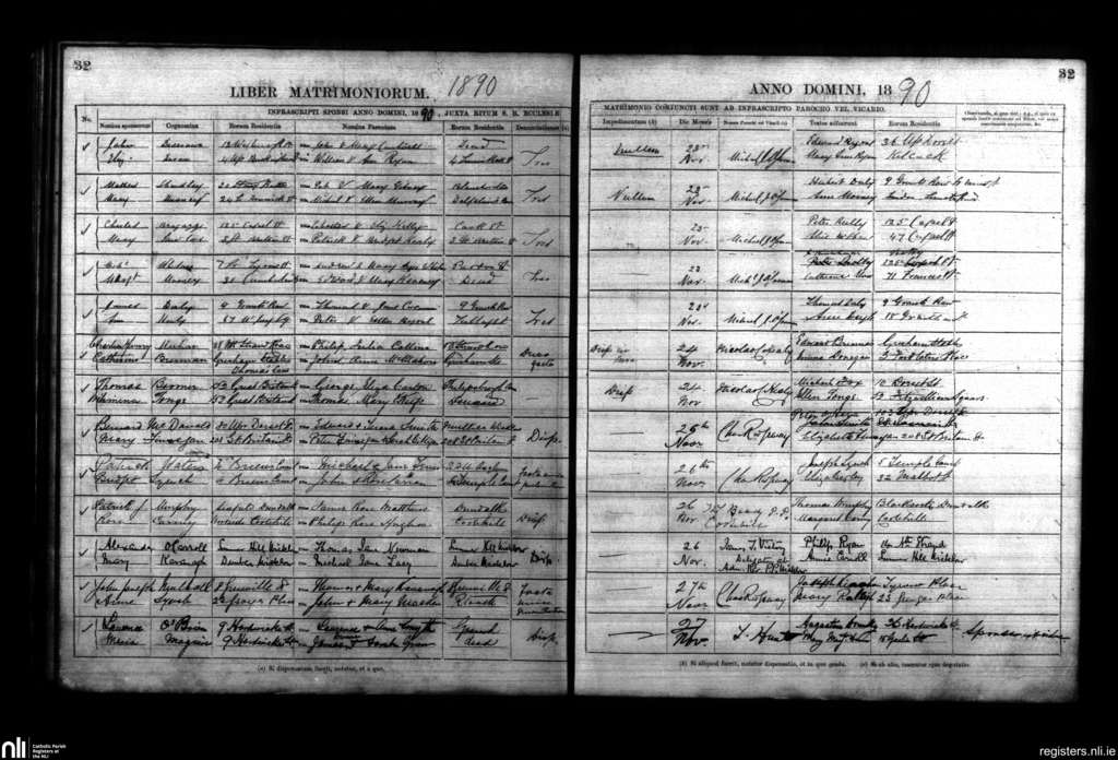 St. Mary's, Dublin city; County of Dublin; Archdiocese of Dublin. Marriages, Nov. 1890