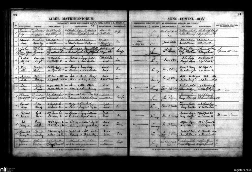 St. Mary's, Dublin city; County of Dublin; Archdiocese of Dublin. Marriages, Jan. 1891