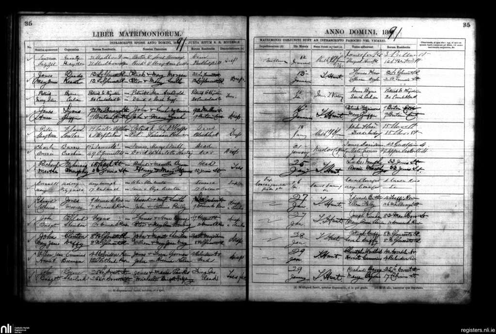 St. Mary's, Dublin city; County of Dublin; Archdiocese of Dublin. Marriages, Jan. 1891