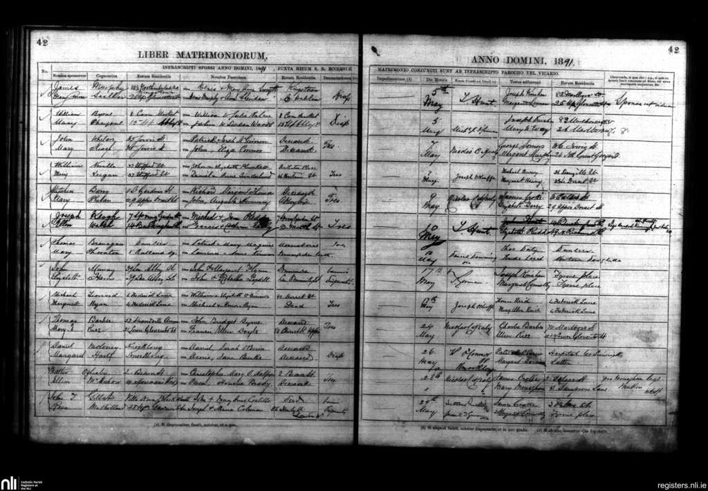 St. Mary's, Dublin city; County of Dublin; Archdiocese of Dublin. Marriages, May 1891