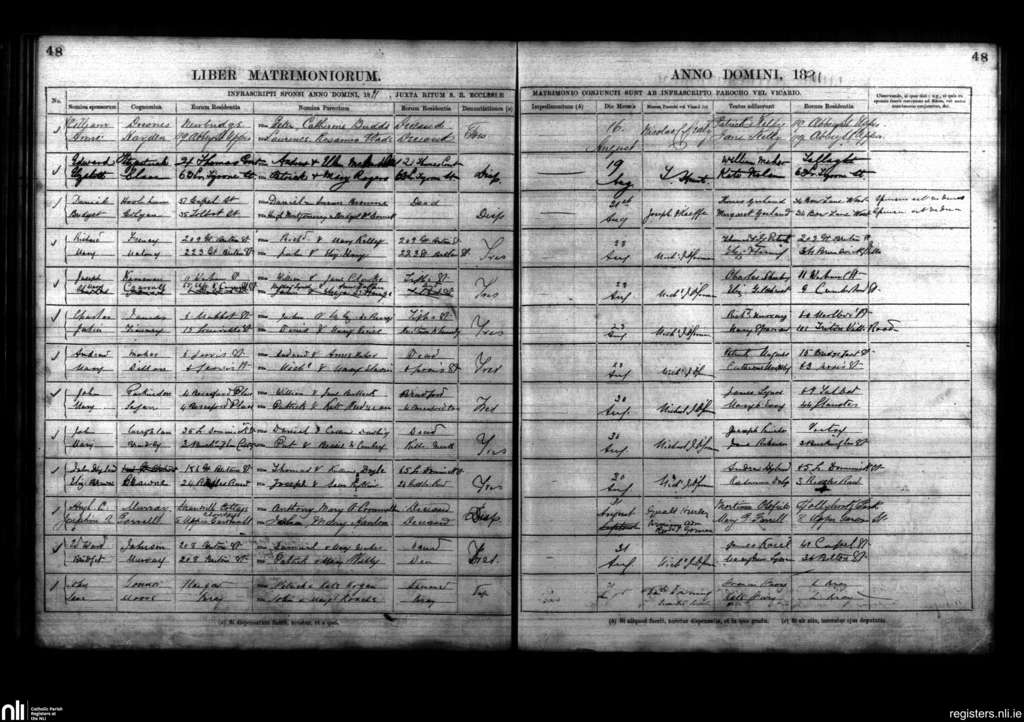 St. Mary's, Dublin city; County of Dublin; Archdiocese of Dublin. Marriages, Aug. 1891