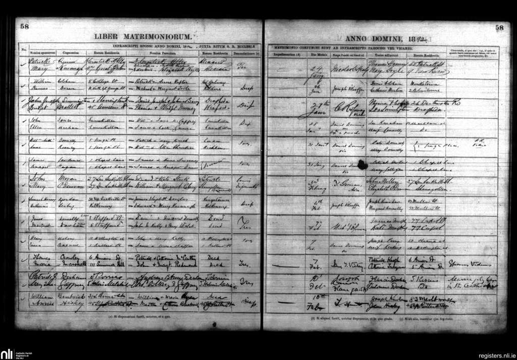 St. Mary's, Dublin city; County of Dublin; Archdiocese of Dublin. Marriages, Jan. 1892 to Feb. 1892