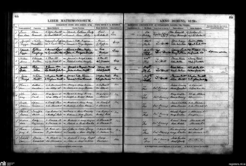 St. Mary's, Dublin city; County of Dublin; Archdiocese of Dublin. Marriages, Feb. 1892