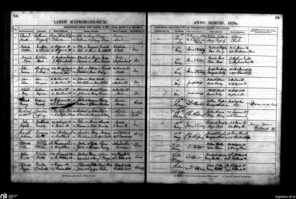 St. Mary's, Dublin city; County of Dublin; Archdiocese of Dublin. Marriages, May 1892