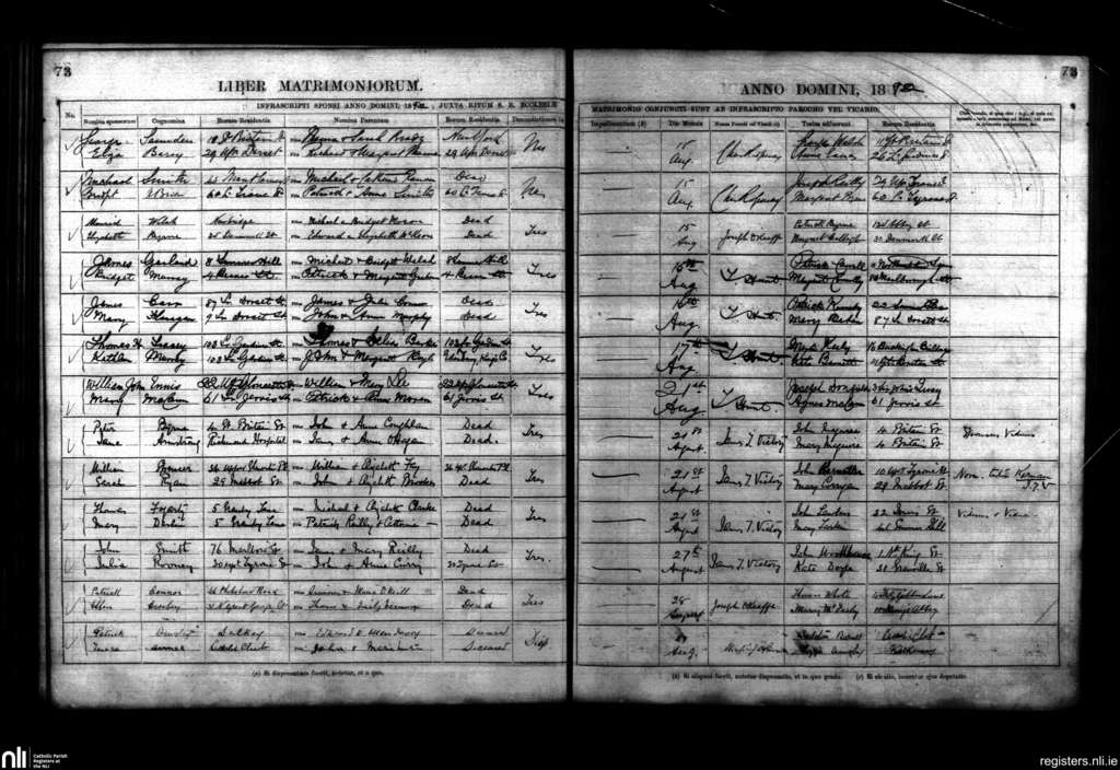 St. Mary's, Dublin city; County of Dublin; Archdiocese of Dublin. Marriages, Aug. 1892