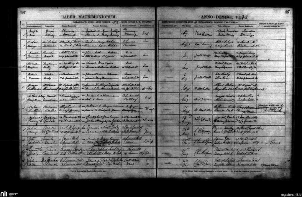 St. Mary's, Dublin city; County of Dublin; Archdiocese of Dublin. Marriages, Aug. 1893