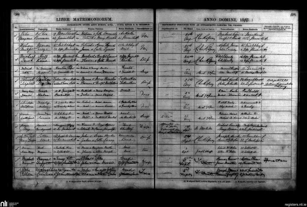 St. Mary's, Dublin city; County of Dublin; Archdiocese of Dublin. Marriages, Aug. 1893 to Sep. 1893