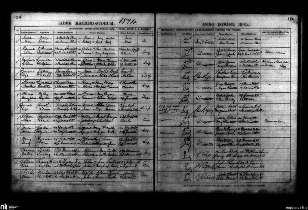 St. Mary's, Dublin city; County of Dublin; Archdiocese of Dublin. Marriages, June 1894 to July 1894