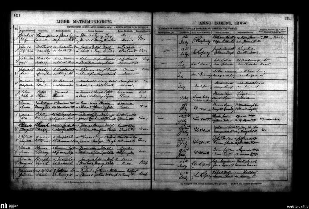 St. Mary's, Dublin city; County of Dublin; Archdiocese of Dublin. Marriages, July 1894