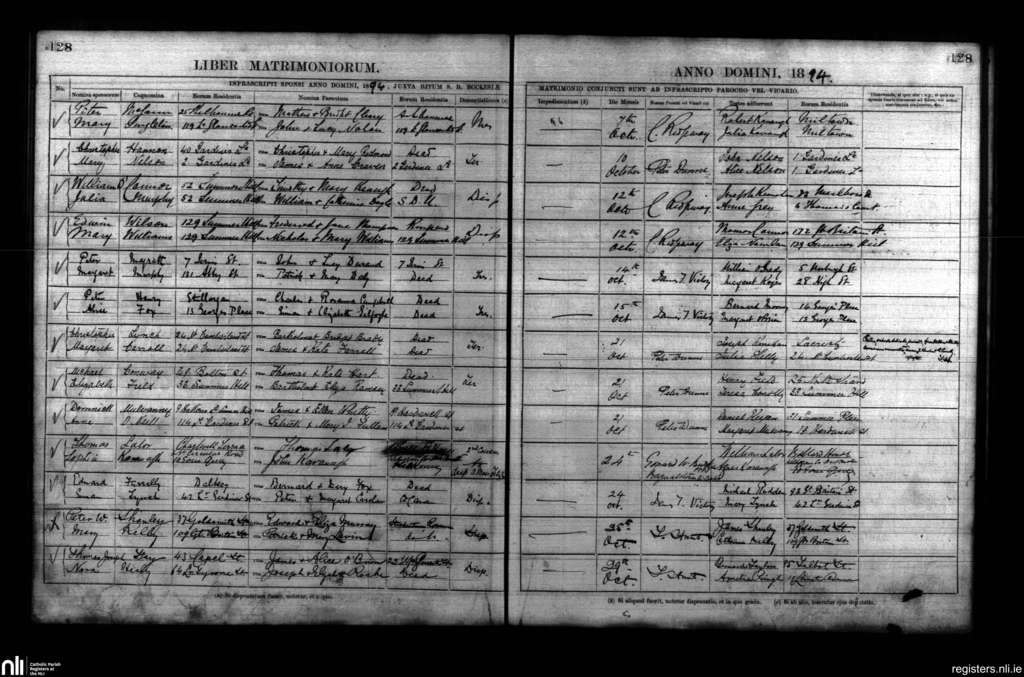 St. Mary's, Dublin city; County of Dublin; Archdiocese of Dublin. Marriages, Oct. 1894
