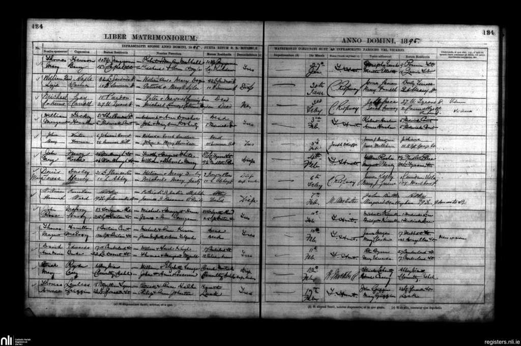 St. Mary's, Dublin city; County of Dublin; Archdiocese of Dublin. Marriages, Jan. 1895 to Feb. 1895