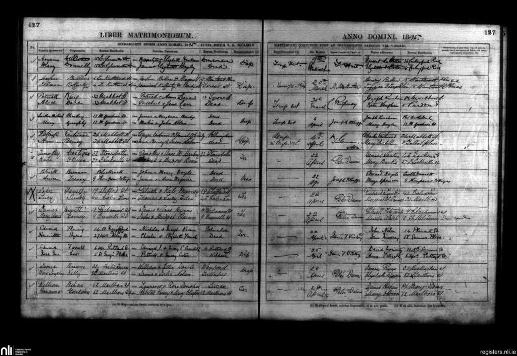 St. Mary's, Dublin city; County of Dublin; Archdiocese of Dublin. Marriages, Mar. 1895 to Apr. 1895