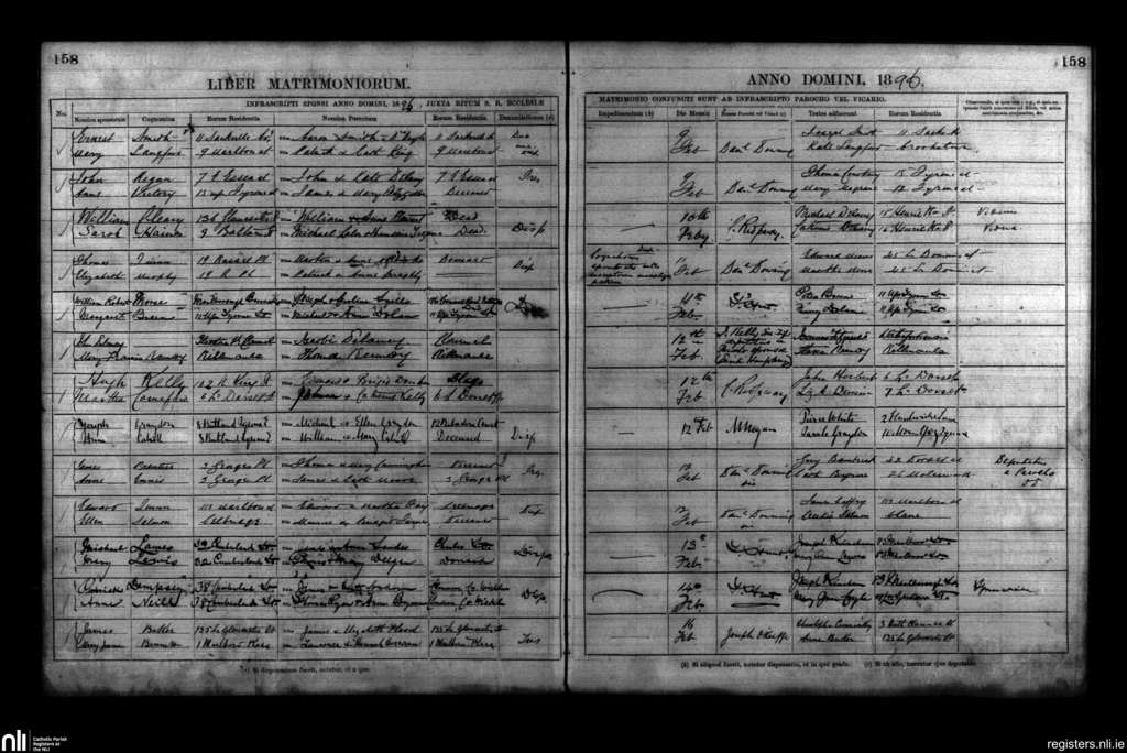 St. Mary's, Dublin city; County of Dublin; Archdiocese of Dublin. Marriages, Feb. 1896