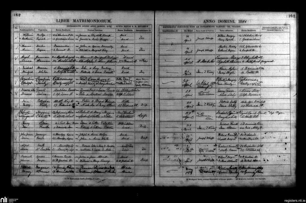 St. Mary's, Dublin city; County of Dublin; Archdiocese of Dublin. Marriages, Apr. 1896 to May 1896