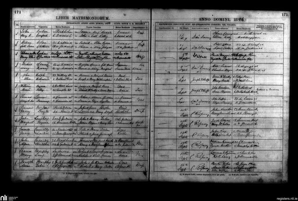 St. Mary's, Dublin city; County of Dublin; Archdiocese of Dublin. Marriages, Aug. 1896 to Sep. 1896
