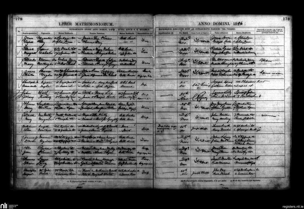 St. Mary's, Dublin city; County of Dublin; Archdiocese of Dublin. Marriages, Nov. 1896