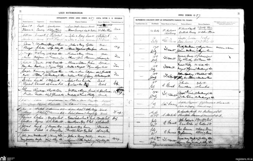 St. Mary's, Dublin city; County of Dublin; Archdiocese of Dublin. Marriages, July 1897