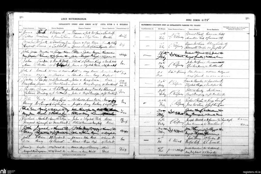 St. Mary's, Dublin city; County of Dublin; Archdiocese of Dublin. Marriages, Feb. 1898
