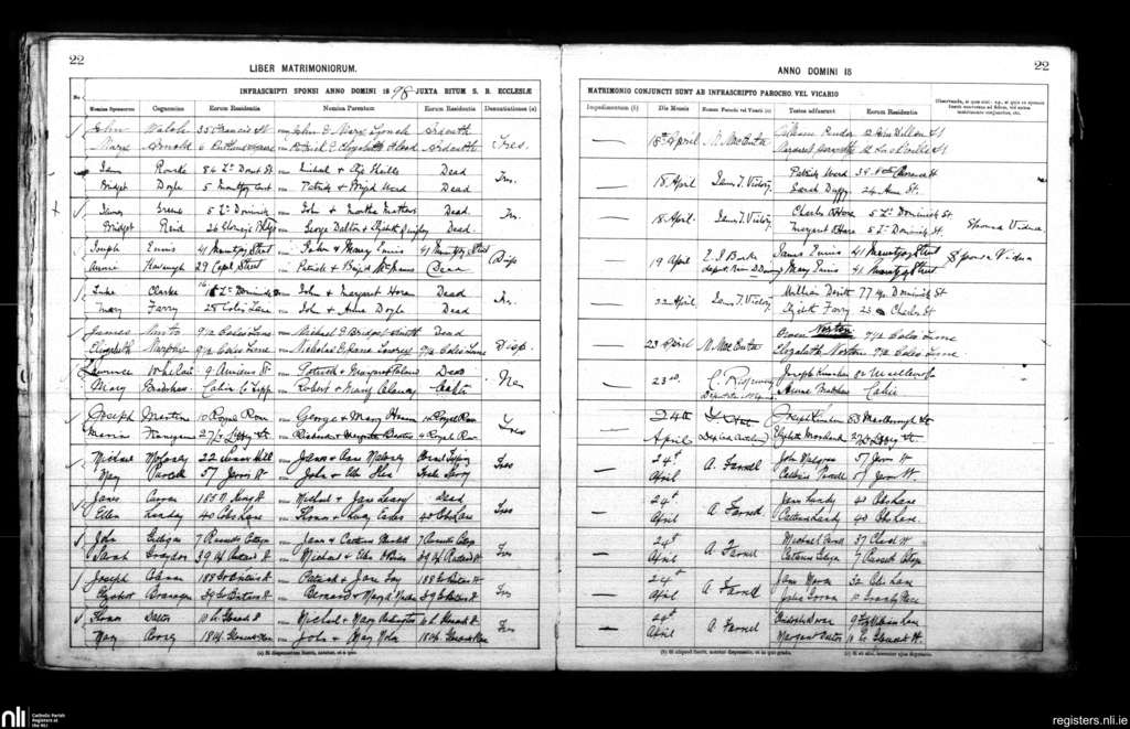 St. Mary's, Dublin city; County of Dublin; Archdiocese of Dublin. Marriages, Apr. 1898