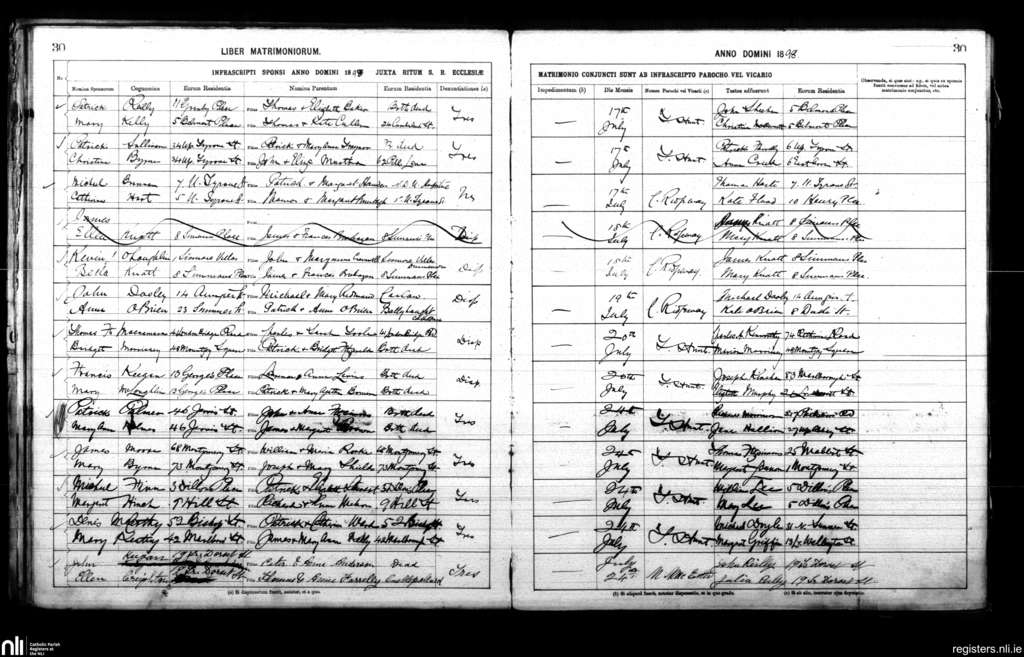 St. Mary's, Dublin city; County of Dublin; Archdiocese of Dublin. Marriages, July 1898