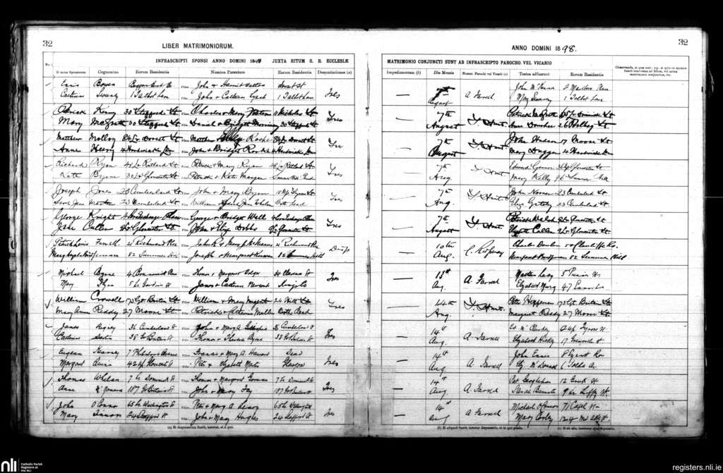 St. Mary's, Dublin city; County of Dublin; Archdiocese of Dublin. Marriages, Aug. 1898