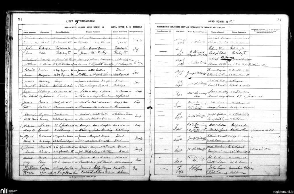 St. Mary's, Dublin city; County of Dublin; Archdiocese of Dublin. Marriages, Aug. 1898 to Sep. 1898