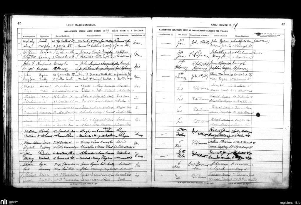 St. Mary's, Dublin city; County of Dublin; Archdiocese of Dublin. Marriages, Jan. 1899 to Feb. 1899