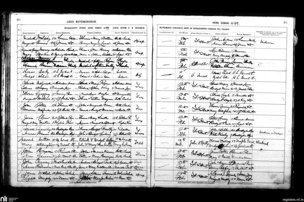 St. Mary's, Dublin city; County of Dublin; Archdiocese of Dublin. Marriages, Feb. 1899