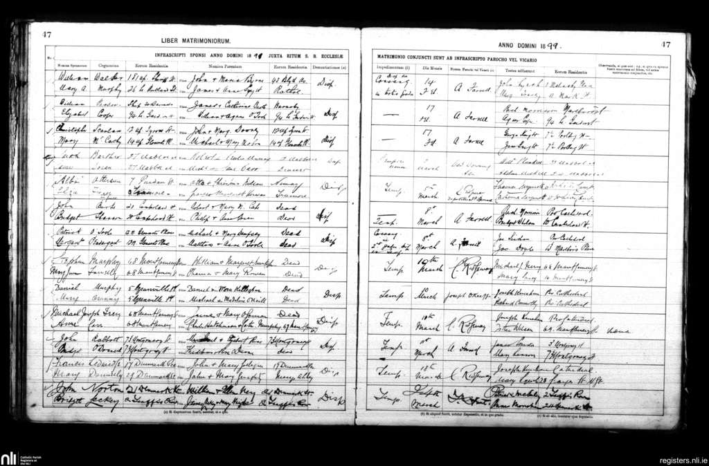 St. Mary's, Dublin city; County of Dublin; Archdiocese of Dublin. Marriages, Feb. 1899 to Mar. 1899