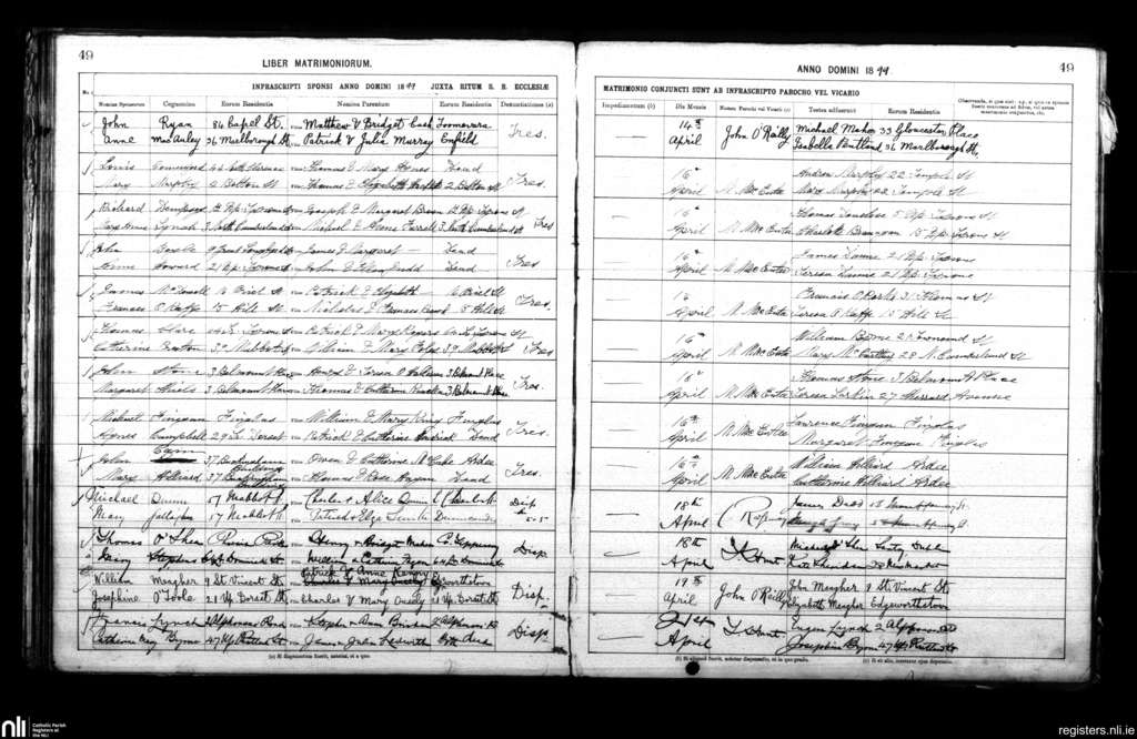 St. Mary's, Dublin city; County of Dublin; Archdiocese of Dublin. Marriages, Apr. 1899