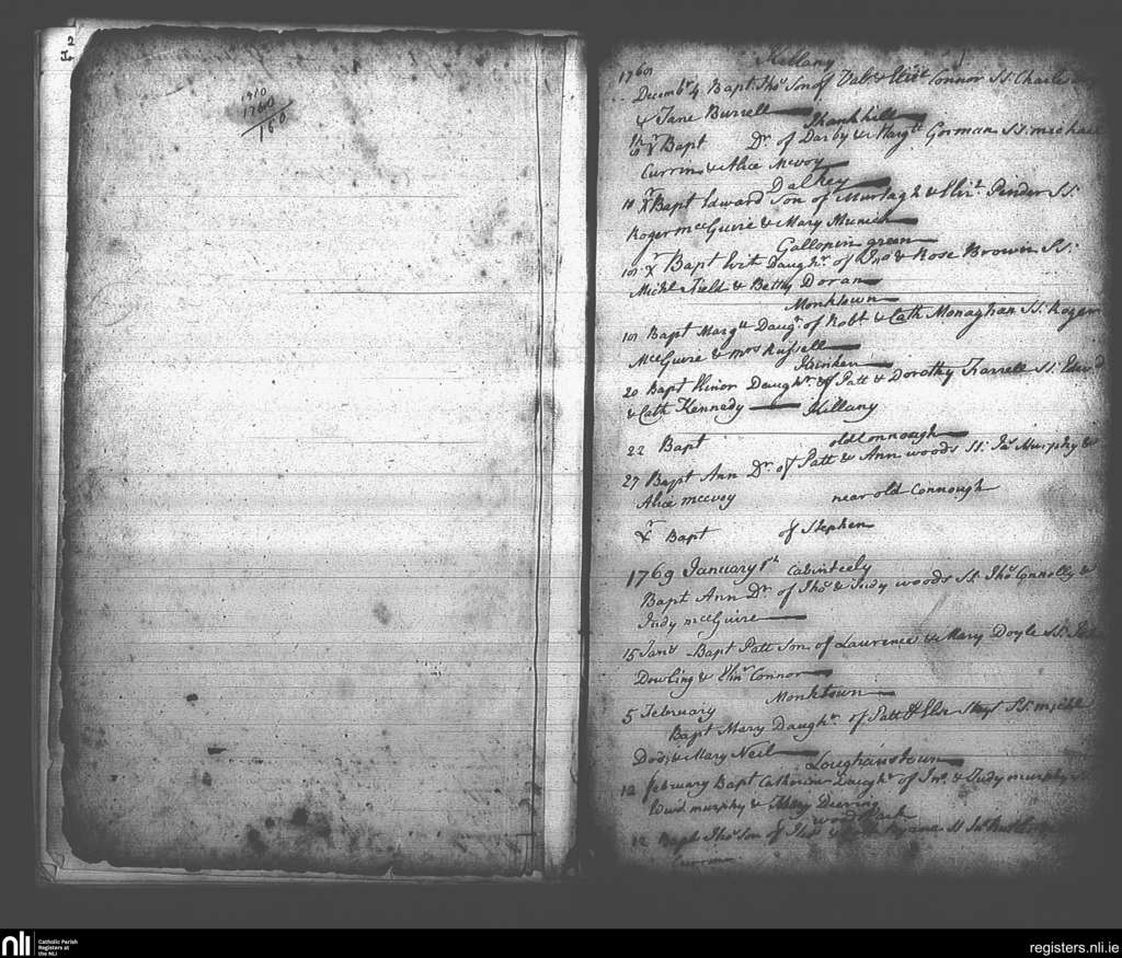 Kingstown; County of Dublin; Archdiocese of Dublin. Baptisms, Dec. 1768 to Feb. 1769