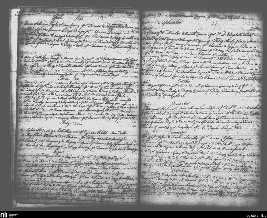 Kingstown; County of Dublin; Archdiocese of Dublin. Baptisms, Apr. 1772 to Feb. 1773