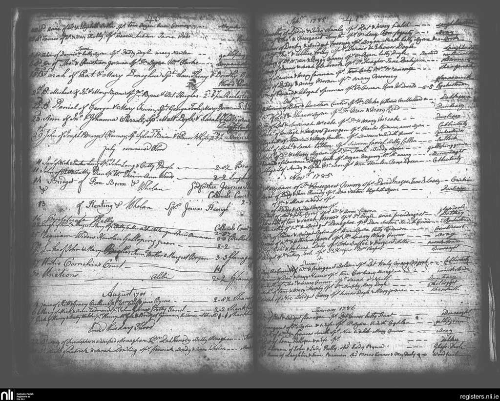 Kingstown; County of Dublin; Archdiocese of Dublin. Baptisms, May 1785 to Jan. 1786