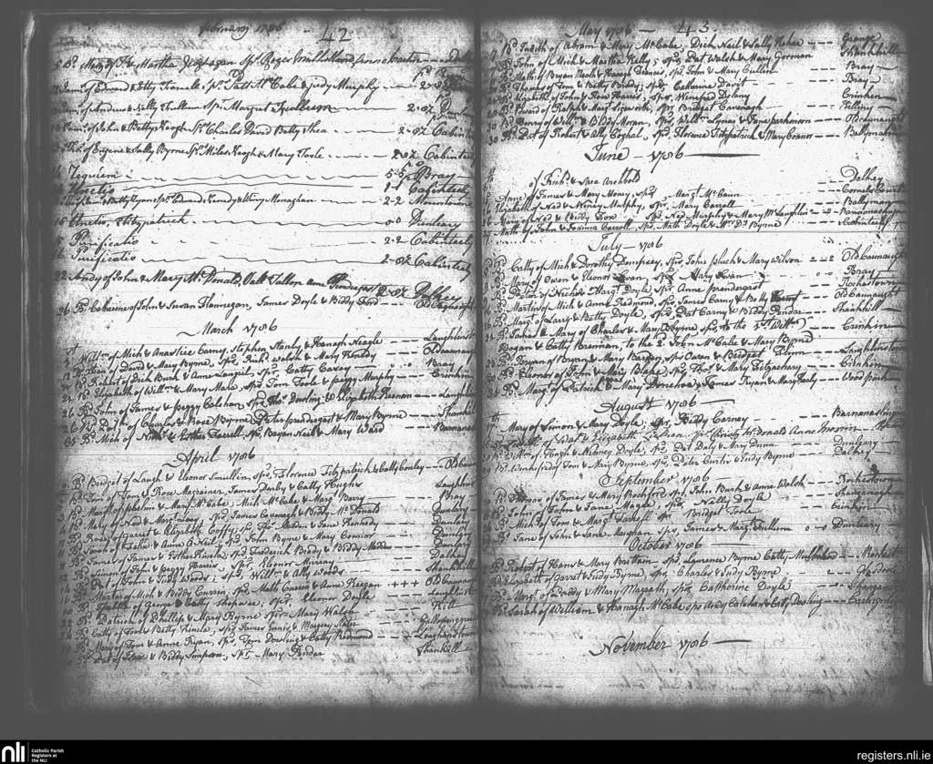Kingstown; County of Dublin; Archdiocese of Dublin. Baptisms, Feb. 1786 to Nov. 1786