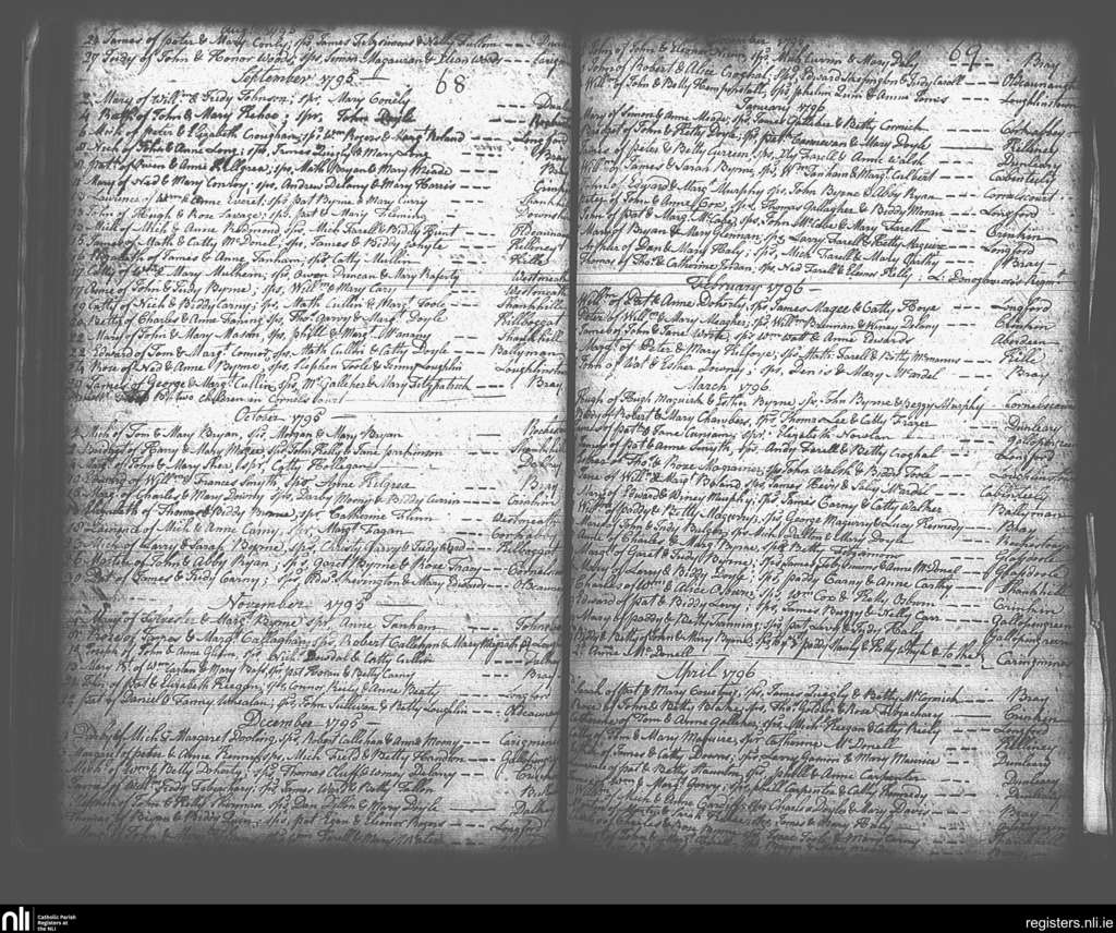 Kingstown; County of Dublin; Archdiocese of Dublin. Baptisms, Aug. 1795 to Apr. 1796