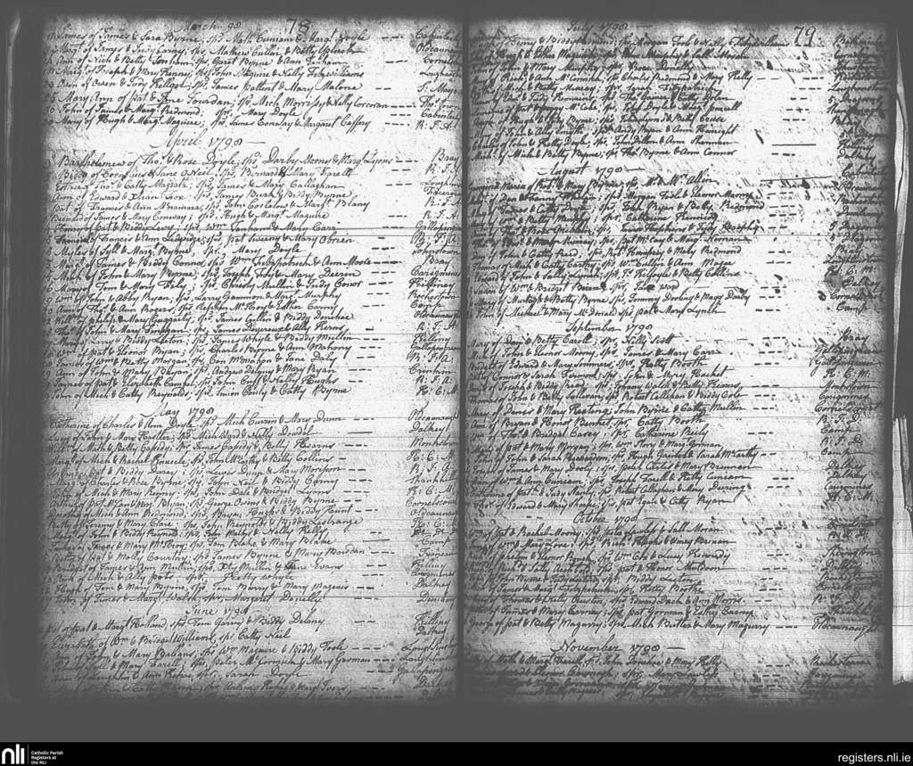 Kingstown; County of Dublin; Archdiocese of Dublin. Baptisms, Mar. 1798 to Nov. 1798